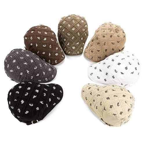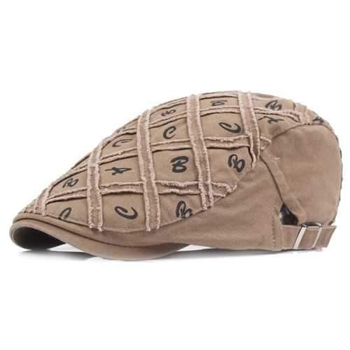 Men Cotton Grid Washed Beret Hat Buckle Adjustable Paper Boy Cabbie Golf Gentleman Caps